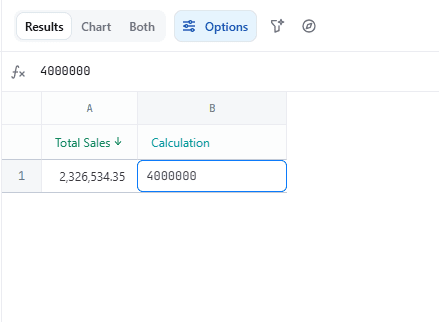 Let us consider the following scenario: we want to compare Total sales to a defined Max Sales value and show progress in a Gauge Chart.