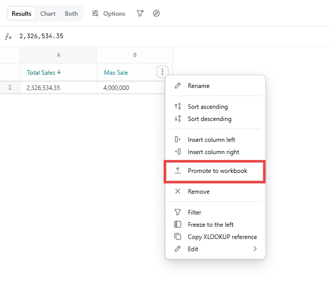 After adding the calculated column, promote it to the workbook by clicking on the ellipsis and selecting Promote to Workbook.