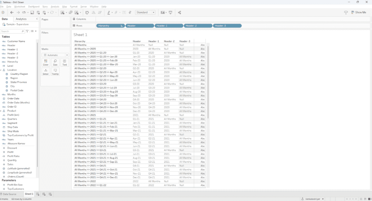 This Hierarchy will act as the base for the entire drill down table.