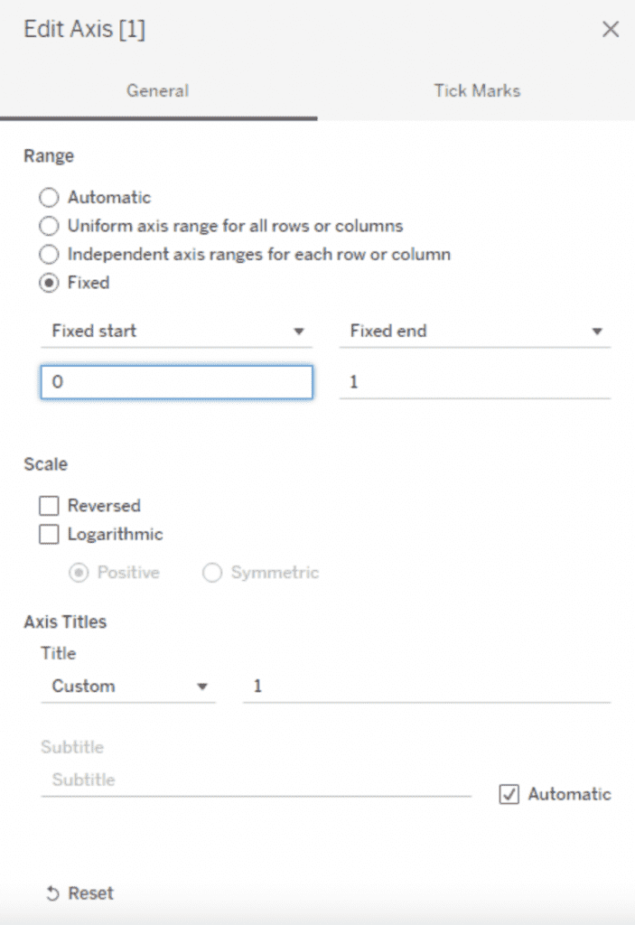 Now, edit the axis as per the following image and untick Show Header.