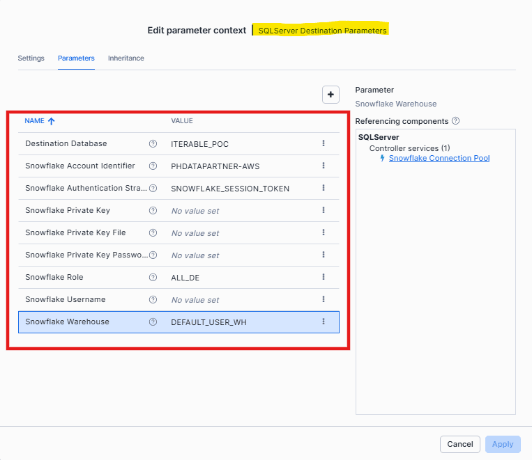 Once deployed, you’ll see a new process group on the canvas; this is the packaged SQL Server to Snowflake connector.
