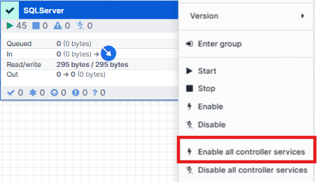 Go to Canvas and right-click on SQL Server Process Group, then select Controller Services.