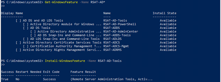 Get-WindowsFeature -Name RSAT-AD*