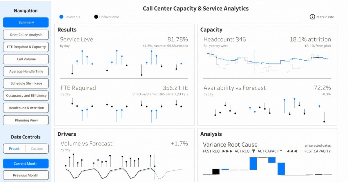Call Center Capacity and Service Analytics Tableau Dashboard Example